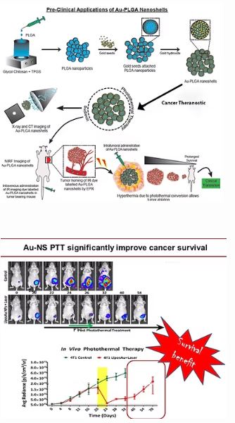 Our group has long drawn interest in Cancer Nanomedicines which provide alternative treatment solutions for otherwise difficult to treat cancers. To develop various bio-functionalized, tumor-targeted nanomedicine materials for cancer therapy, we are actively engaged in multiple collaborative projects. In one promising line of work done in collaboration with NanoBios Lab at IlT-B, we have tested multiple biocompatible gold-nanospheres (Au-NS) nanomaterial for photothermal therapy (PTT). This method shows exceptional therapy efficacy in vivo. This triggered, precisive treatment method of palpable solid tumors with accumulated nano-sized particles when briefly exposed to NIR laser irradiation confers excellent tumor tissue ablation, while keeping the surrounding tissue safe ACS Nanoletters, 2015; Scientific Reports, 2018; Applied Materials Today. 2020; Nanomedicine: Nanotechnology, Biology, and Medicine 2021: Nanoscale 2022]. This mode of treatment is found to be fast, portable and could be a cost-effective procedure tested against human drug- resistant and radiation-resistant human cancers of multiple types using preclinical mouse models and non-invasive imaging [Biomaterials Advances, 2022] Additionally, we have completed work validating two novel organic NIR dyes with exceptional photothermal effect and published in high impact nternational iournals [ACS Appl. Mater. Interfaces, 2020: NPG Asi= Materials, 2020]. We were granted with multiple patents on this line of work. Working with Chemistry dept. NMIMS Mumbai very recently we have also reported synthesis of a multifunctional CuS-ZnS nanocomposites modified in situ for targeted cancer therapy and imaging. Here the Cus moiety anabled near-infrared light responsive photothermal therapy heress ZnS showed potential for photoluminescence [Journal of Drug Delivery Science and Technology 2022